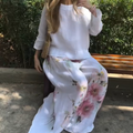 CLASSIC ROUND-NECK SOLID TOP: The solid-colored top is designed with a simple round neckline, making it easy to accessorize. It perfectly complements the floral pants, creating a naturally balanced and relaxed yet elegant ensemble.