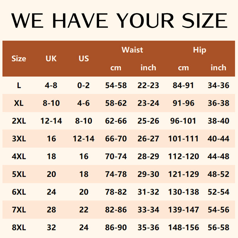 Size Freedom → S-8XL (Hips 34"-58"), tested by real postpartum/menopausal bodies