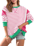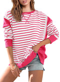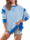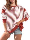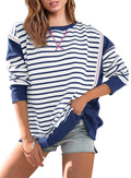Womens oversized striped sweatshirt is made of 95%Polyester+5%Elastane, it is very soft, breathable and skin-friendly, to keep you comfortable and relaxed all day, suitable for summer, spring and fall.
