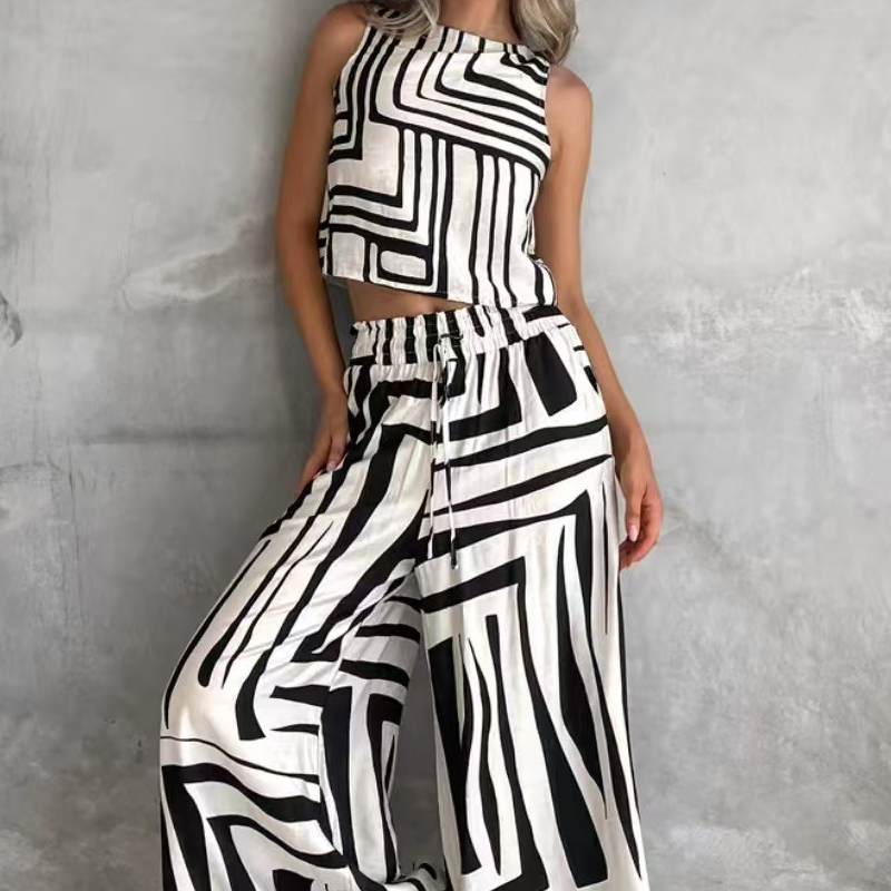 Striped Sleeveless Top & Wide-Leg Pants Set