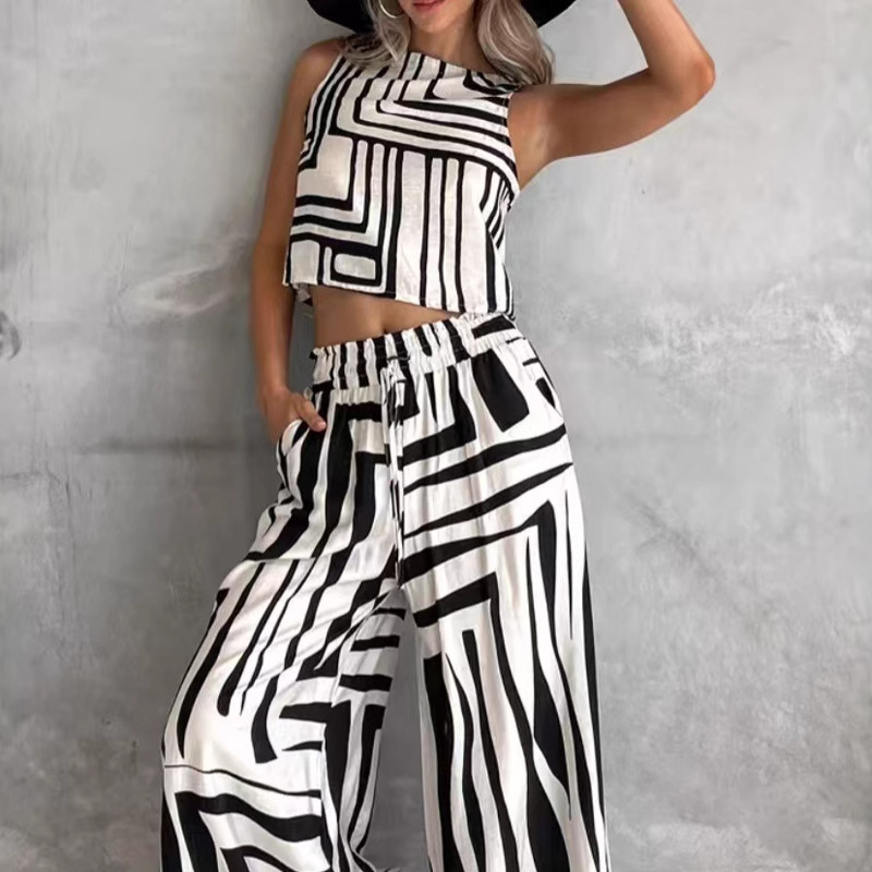 Package Includes: 1×Striped Sleeveless Top & Wide-Leg Pants Set