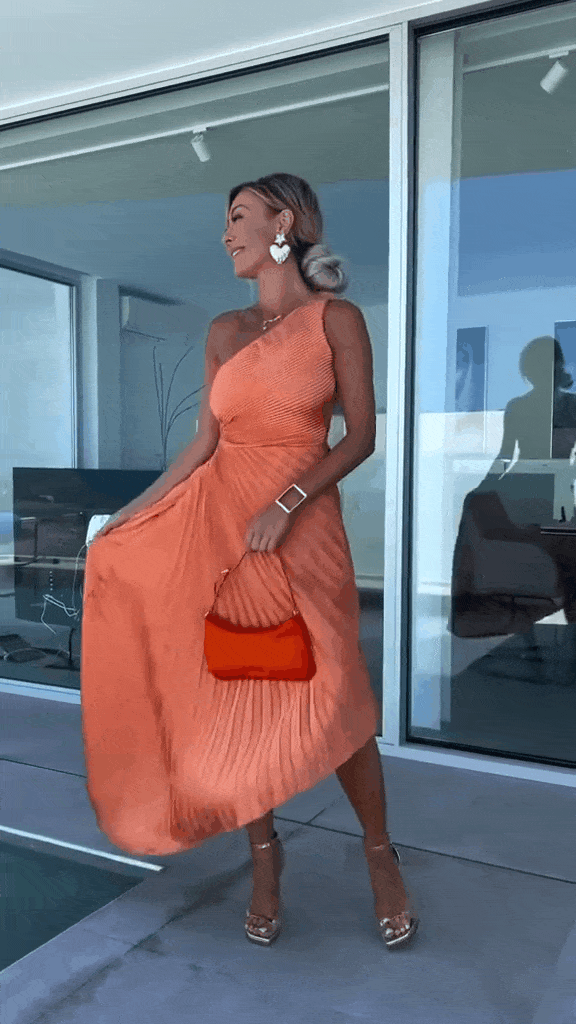 This one-shoulder beauty with a side detail is perfect for any occasion, from summer parties to romantic dinners. Made from a beautifully flowing fabric and available in six enchanting colors, you’ll feel like a true goddess when you wear this dress!