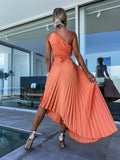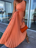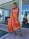 Stunning One - Shoulder Pleated Cut - Out Dress