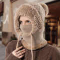 Stylish Chunky Winter Knit Hat - With Warm Face Cover and Scarf