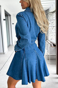Stylish Long Sleeve Pocket Waist Belted Denim Mini Dress