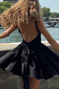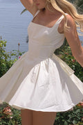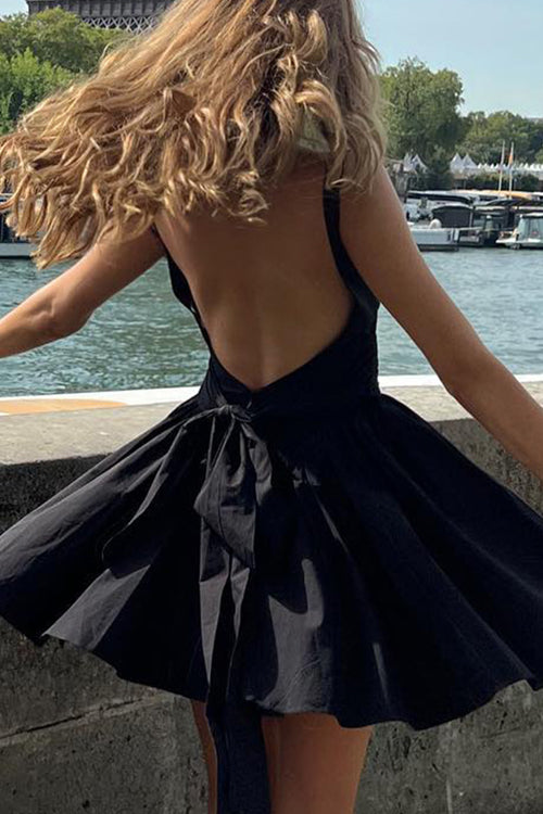 Designed for summery days by the sea. The Summer Break Days Tie-Back Mini Dress features flowy silhouette features wide straps, a square neckline, a flare skirt and an open tie-up back. Style with heels or sandals for a 'fit we love.