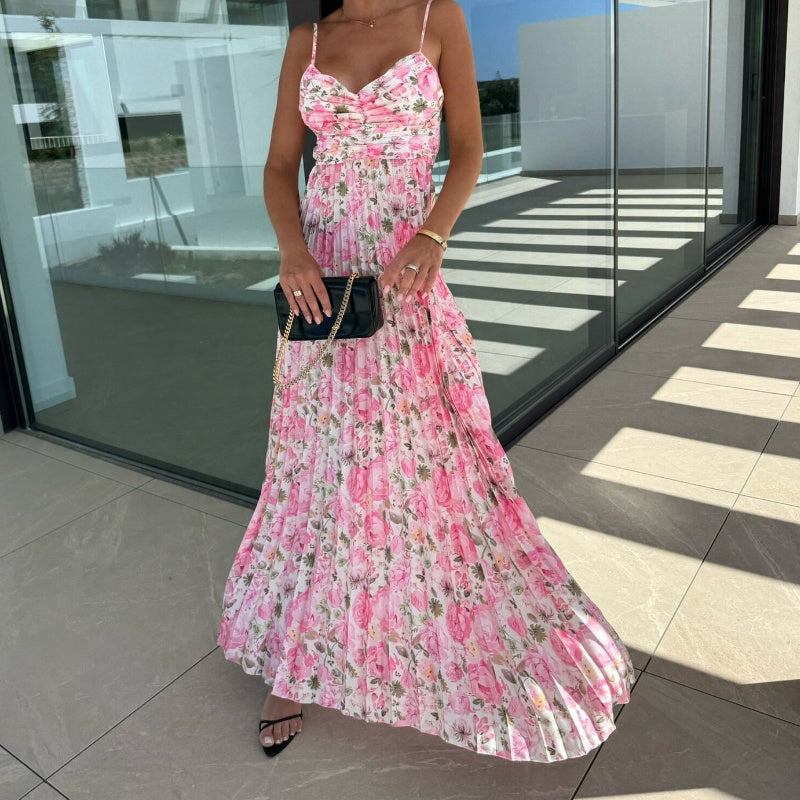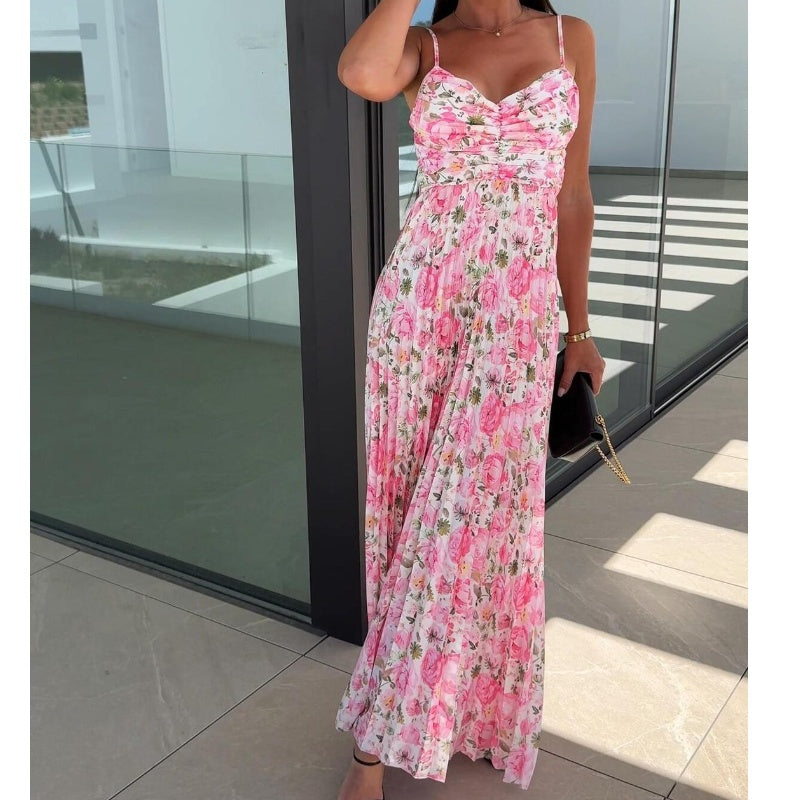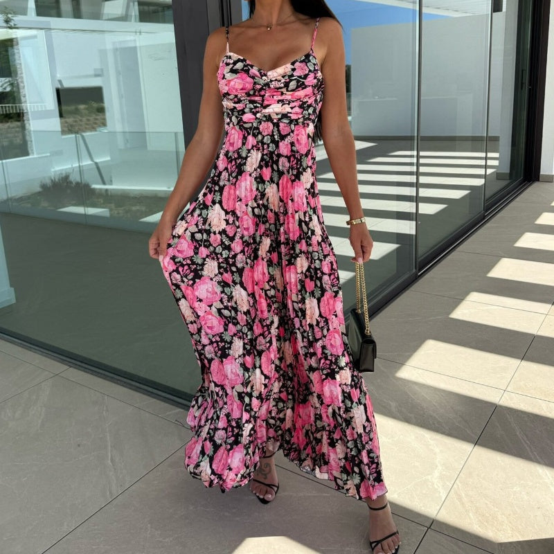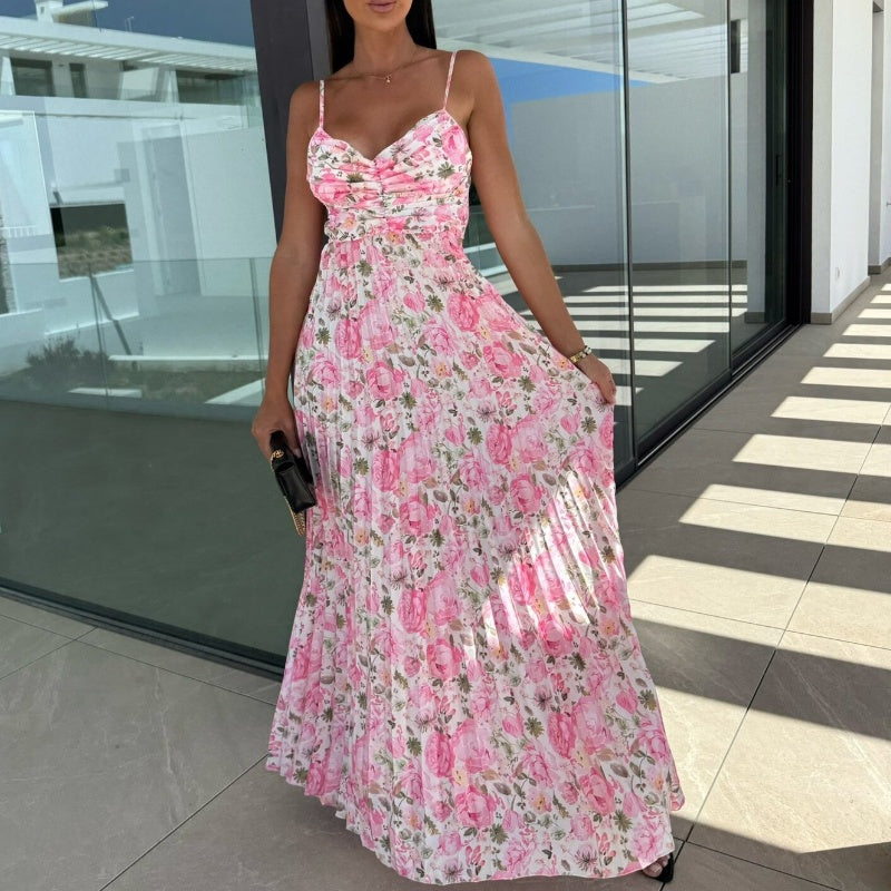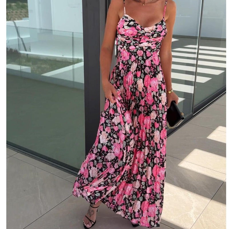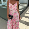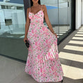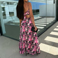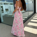 Summer Sexy Backless Printed Ruched Strap Maxi Dress