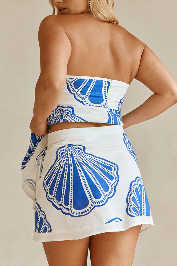 Summer Shell Print Sexy Tube Top and Casual Holiday Shorts Set