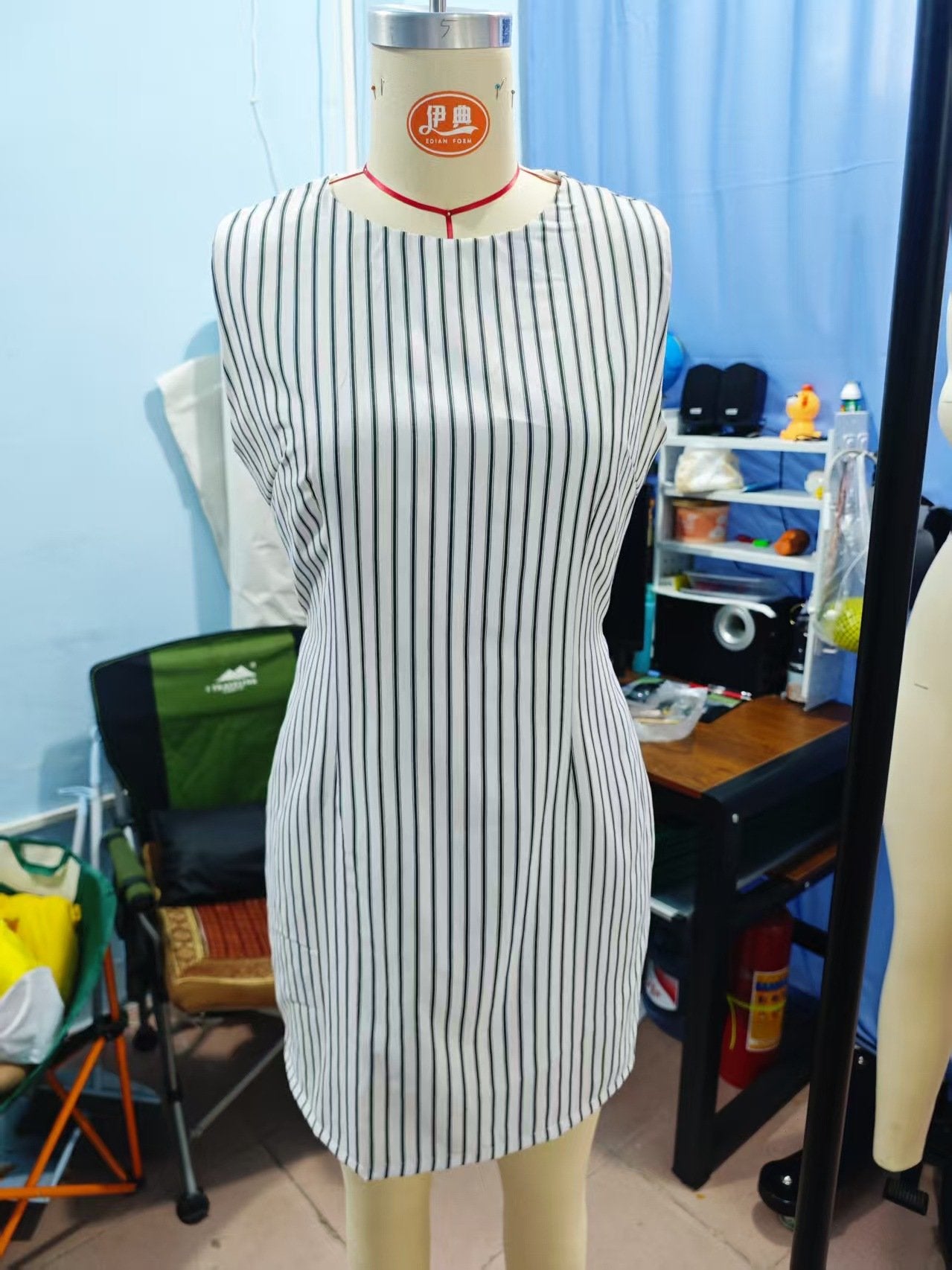 Meet your new summer essential the Stripe Romper. Featuring a sleek, sleeveless silhouette with vertical black-and-white stripes, this piece blends minimalist design with effortless sophistication. The tailored fit subtly hugs the waist for a flattering shape, while the high neckline adds a refined touch. Crafted from lightweight, breathable fabric, this dress is perfect for warm-weather outings where comfort meets style.