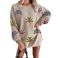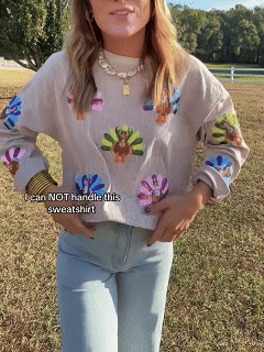 Designed for everyday comfort, this sweatshirt pairs effortlessly with jeans or leggings. The fun turkey print adds a festive Thanksgiving vibe, while the corded texture gives it a soft, laid-back feel — perfect for family dinners or casual outings.