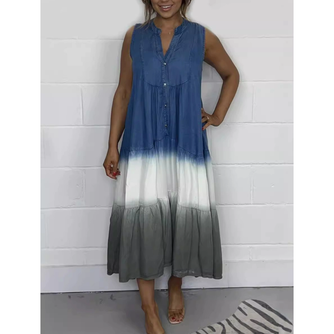 Package Includes: 1×Tie-Dye Sleeveless Denim Maxi Dress