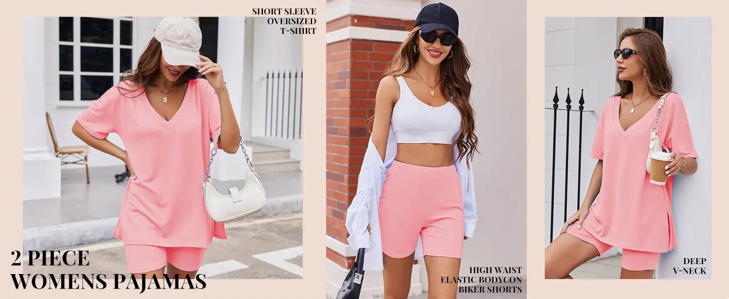 PACKAGE: 2 pieces sweatsuit set available in 5 sizes. You could choose size according to the pj shorts as t-shirt top is oversized style.