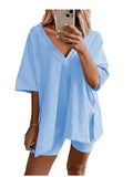 Tshirt Oversized Short Sleeve Tracksuit Beach Cover Up Shorts Set