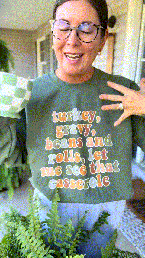 Turkey Gravy Beans And Rolls Let Me See That Casserole Thanksgiving Sweatshirt