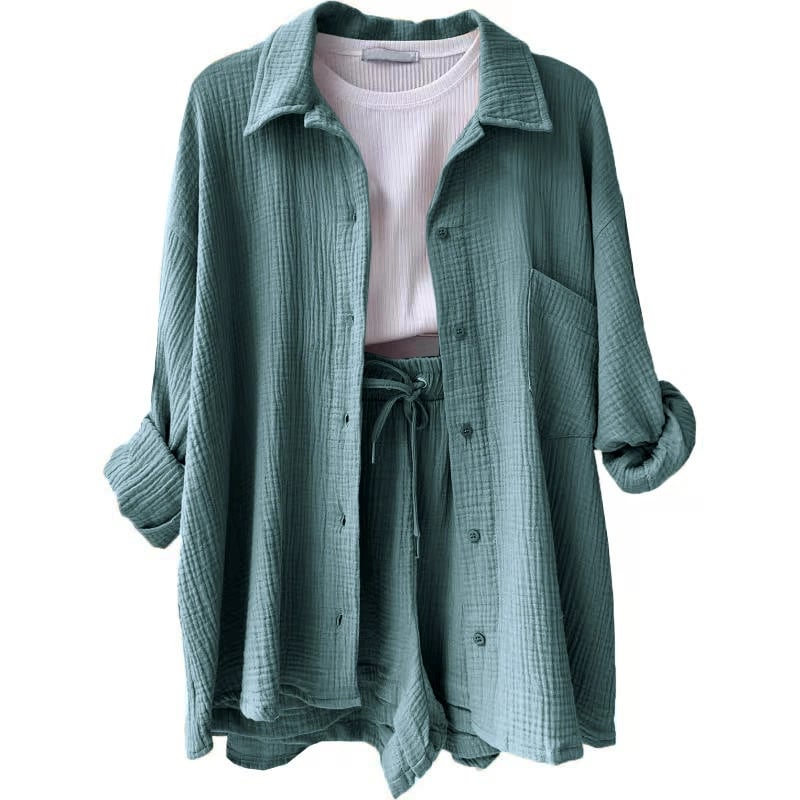 Style: The women's tracksuit set can also be worn alone. Loose button down shirts, can be paired with jeans, pants, shorts, as a beach shirt, etc. High waist mini shorts can be paired with a cami top, bra, crop top and t-shirt for a summer chic look be combined.