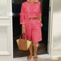 Two-piece Set with Three Dimensional Floral Top,Blazer and Shorts