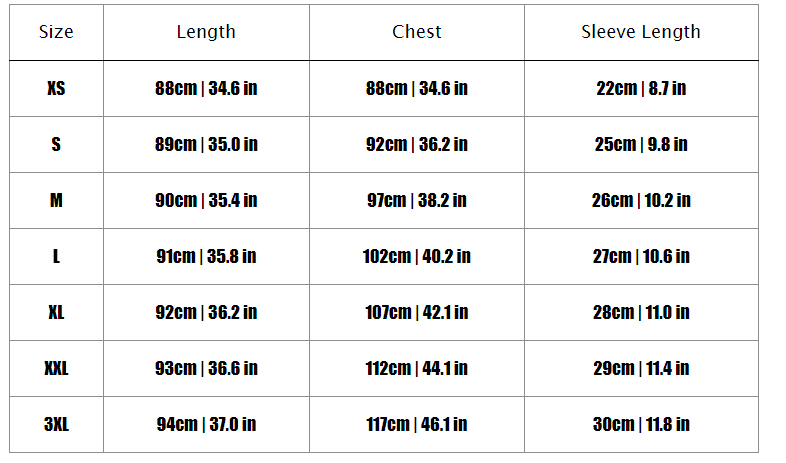 Sizes: XS,S,M,L,XL,XXL,XXXL