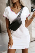V-Neck Contrast Color Ribbed Dress - Effortless Style