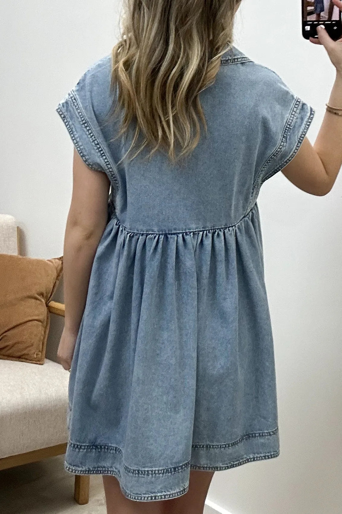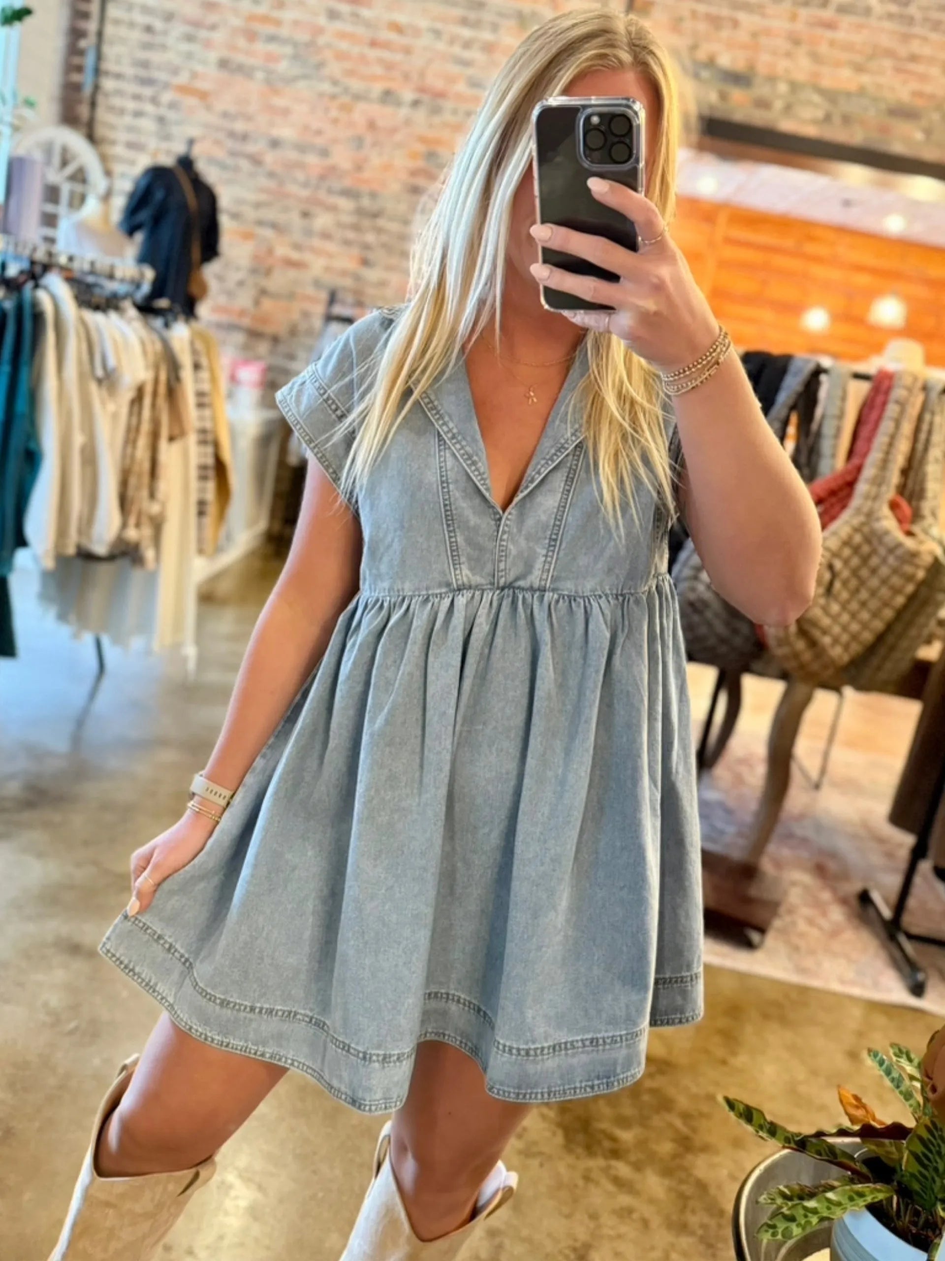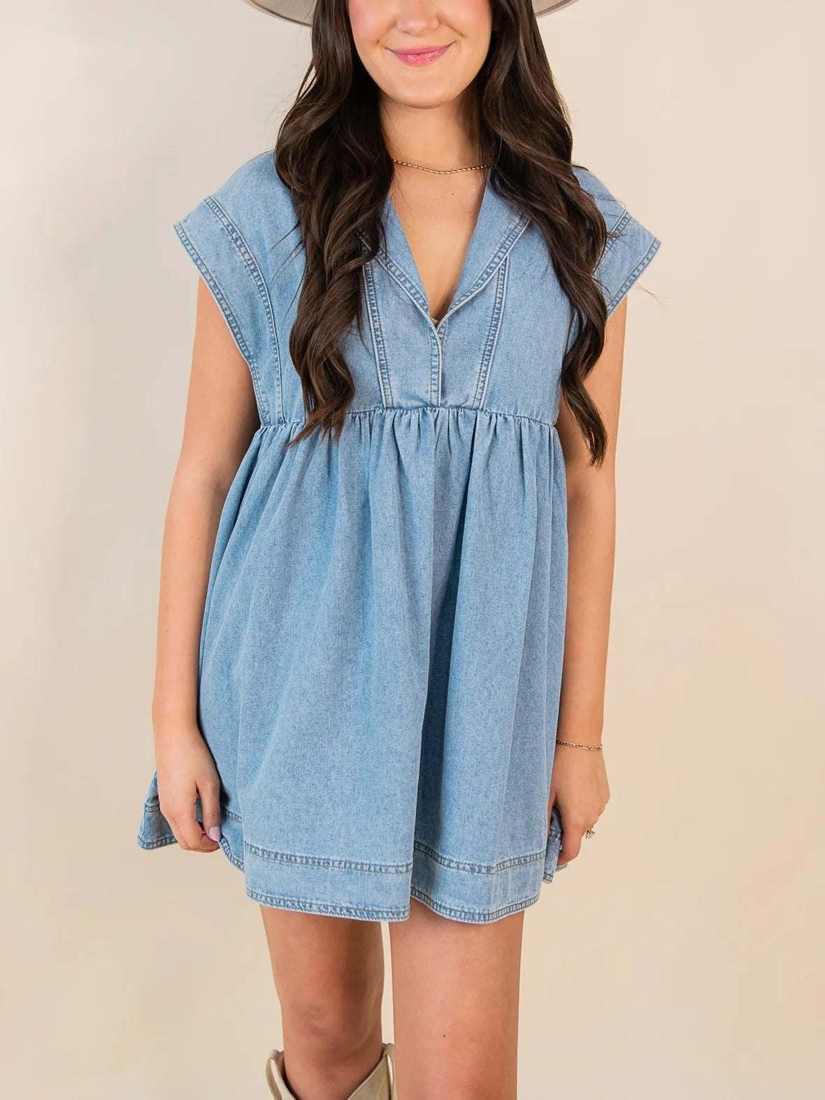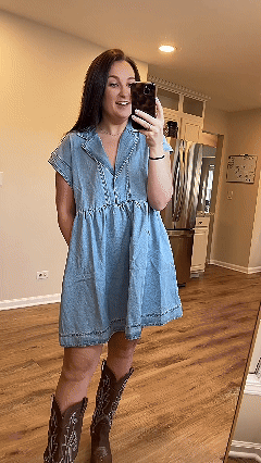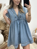 Get ready to rock that casual chic look with our V Neck Denim Baby Doll Dress! Perfect for beach days or casual dates, this dress will have you looking stylish from day to night.