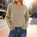 1 × V-Neck Long Sleeve Pointelle Knit Sweater