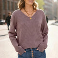 V-Neck Pointelle Knit Pullover Sweater