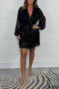 We are glad you clicked our new Black V Neck Puff Sleeve Sequin Mesh Layered Mini Dress because we really like its casual vibe! The Mini Dress design makes it a great choice for any fashion girl.
