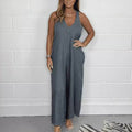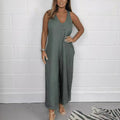 V-Neck Sleeveless Wide Leg Long Pants Jumpsuit