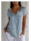 The V-neckline adds a touch of elegance, while the short sleeves provide breathability and ease of movement.