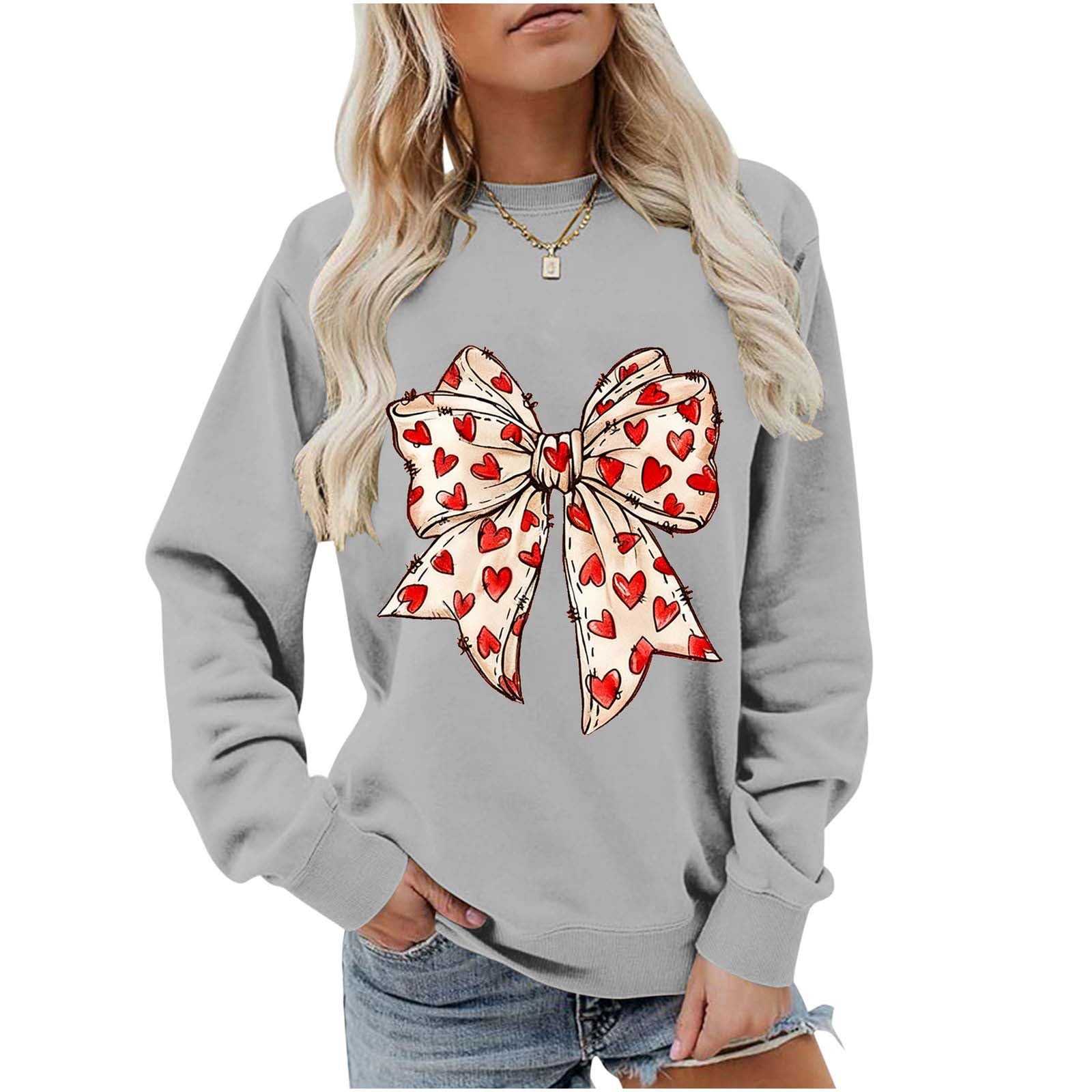 Women's long-sleeve heart bow graphic sweatshirt, oversized fit hides flaws, full of Valentine's vibe, versatile, trendy and super comfy!