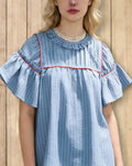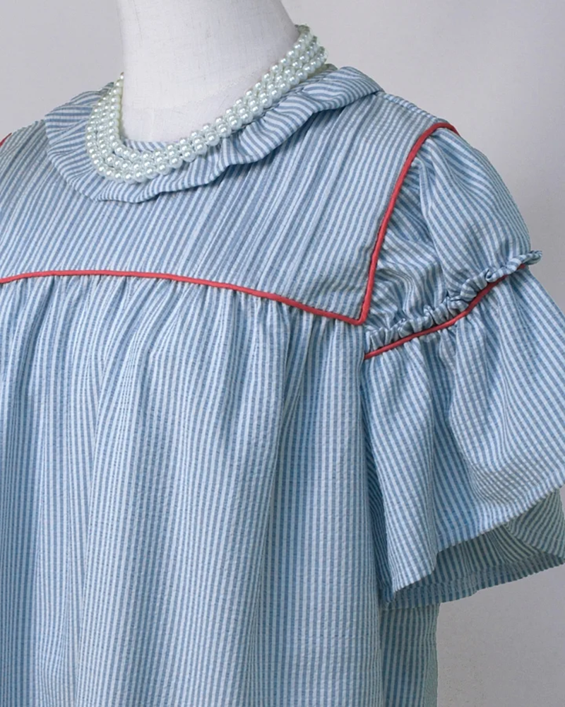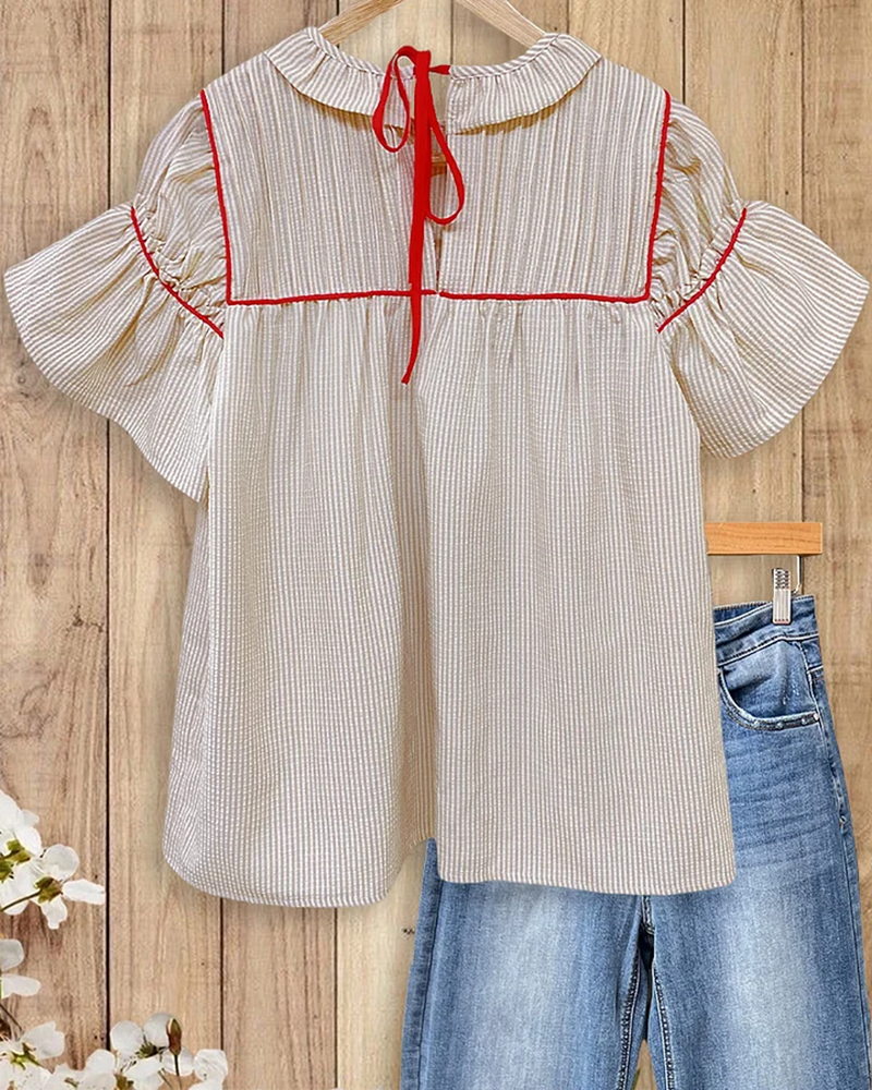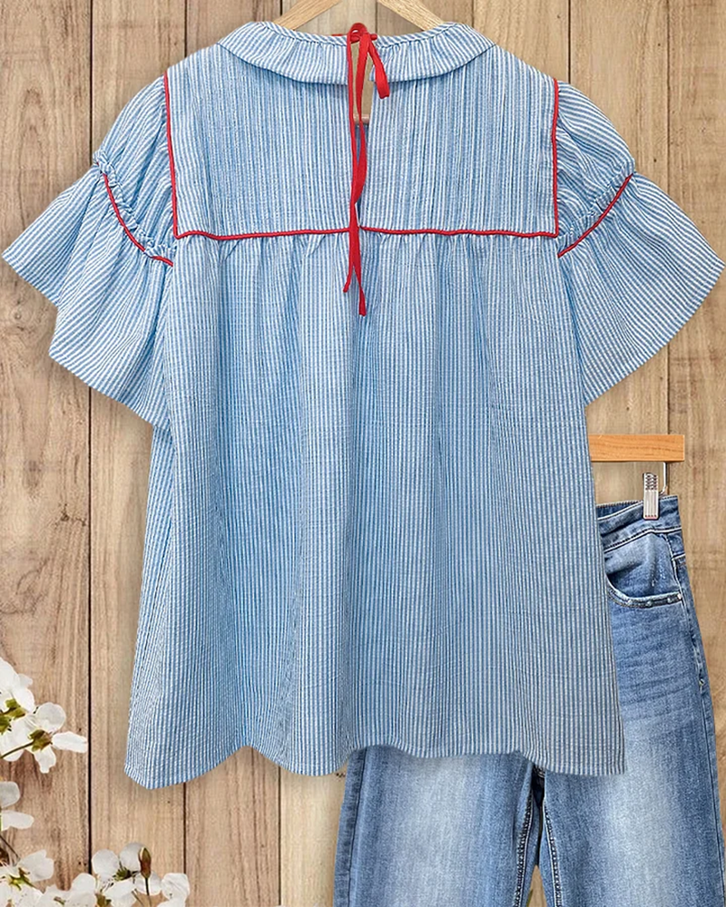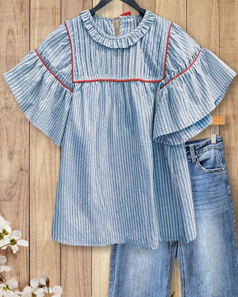 Vertical Striped Pretty Ruffled Trumpet Sleeve Blouse