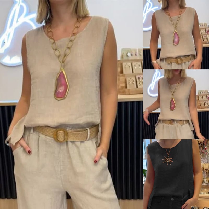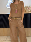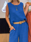 Vest Cotton Linen Sleeveless Trousers Two-Piece Suit