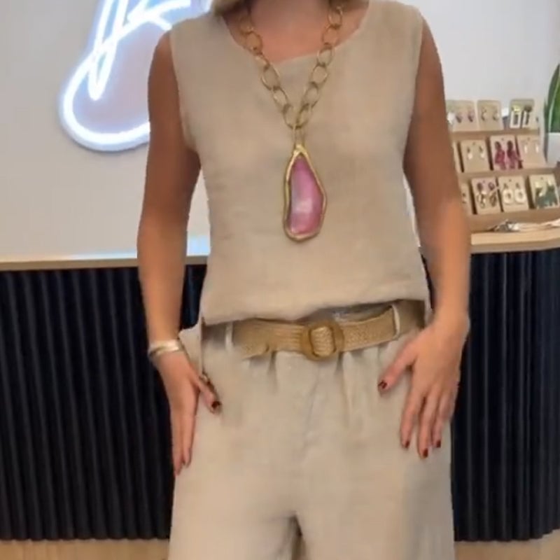 Relaxed and effortless in profile, this set offers maximum comfort and freedom of movement. Wide-legged pants and sleeveless tops are designed to fit all body types, making them the perfect choice for women of any size (S-5XL).