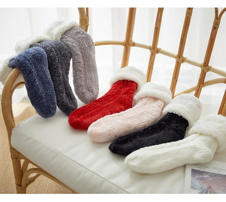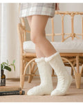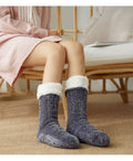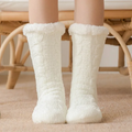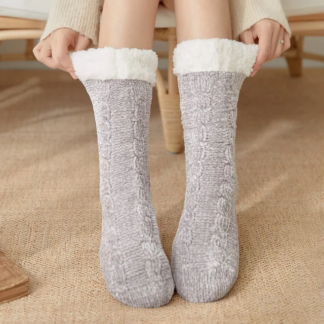 - The Winter Floor Socks has a tall sock design for complete foot and ankle warmth, equipped with non-slip silicone grips on the sole.