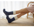 The Winter Floor Socks has a tall sock design for complete foot and ankle warmth, with non-slip silicone grips on the sole.