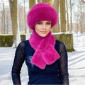 This set includes a plush scarf and a matching wide-brim hat, designed for cold weather conditions. The materials provide thermal insulation and wind protection. The hat features a round crown and a wide brim for full coverage. The set is available in multiple color options to suit various preferences.