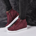 Take your look to new heights in these Trendy Sneaker Wedges! Made of faux suede material and features a closed toe, inner zippers, and approx. a 3" sneaker wedge. We are loving them paired up with frayed denim jeans and a chic blazer cardigan.