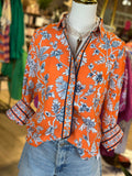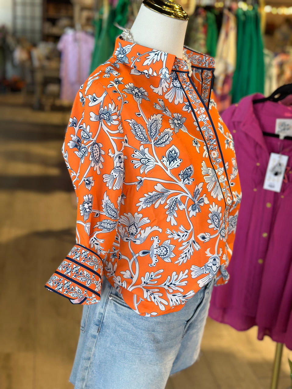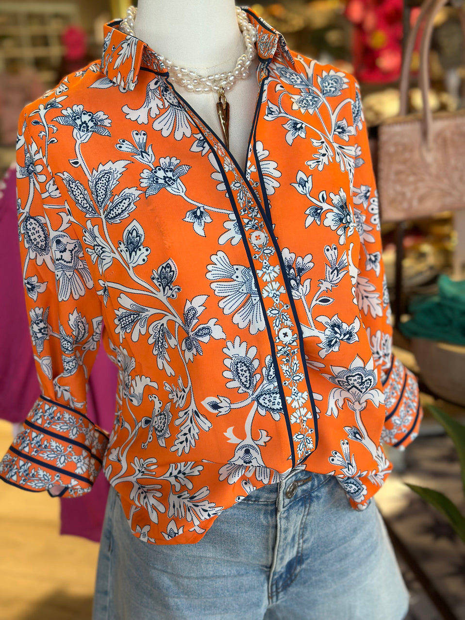Women 3/4 Sleeve Vintage Floral Print Lapel Shirt