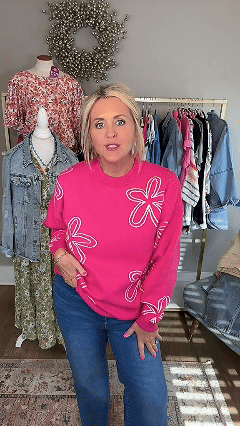 Sweater weather is here and we're loving this one! The fun color and floral print set this apart from the rest! Add your favorite denim, leggings, or joggers for a quick and chic look!