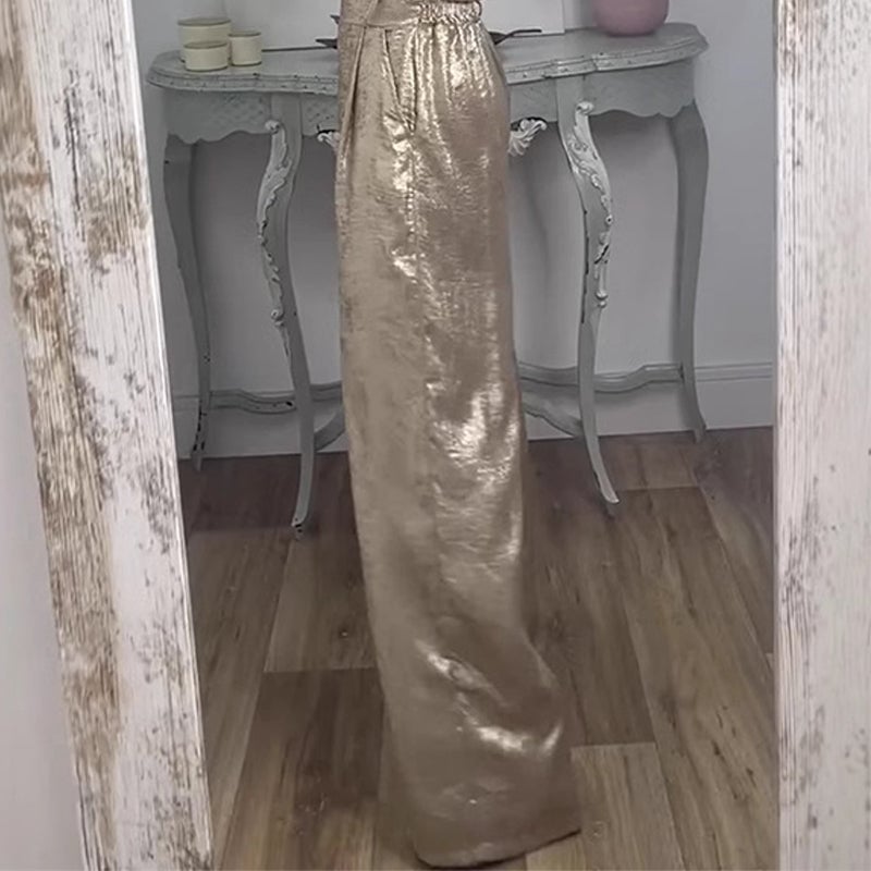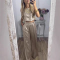 Women’s 2-Piece Glossy Outfit Tank Top & Wide Leg Pants