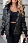 STYLISH PATCHWORK DESIGN: The jacket showcases a trendy patchwork pattern on the sleeves with an extended design, adding a chic, contemporary edge that makes it a unique and standout piece for your autumn and winter wardrobe.