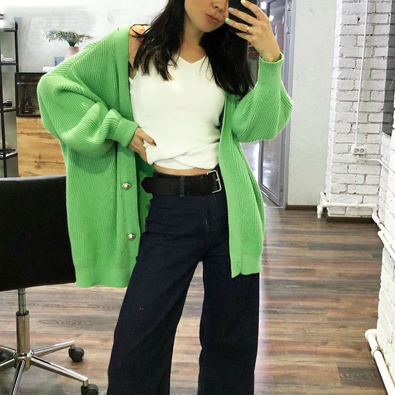 Package Includes: 1 * Women’s Casual Loose V-neck Button Knitted Cardigan