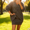 RELAXED COMFORT: The sweater offers a relaxed, oversized silhouette, complemented by a fitted skirt, ensuring comfortable wear without compromising on style. Moves with you for everyday ease.