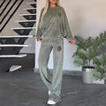 Women’s Cozy Casual Set - Soft Batwing Top and Wide-Leg Pants