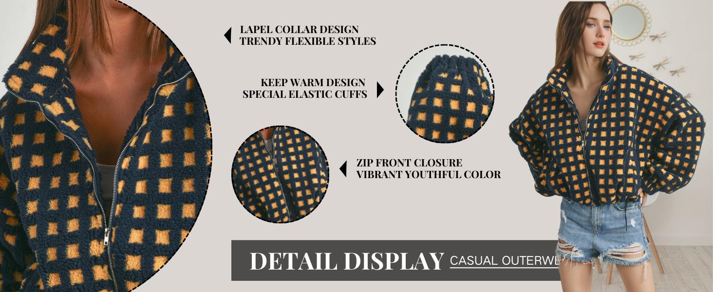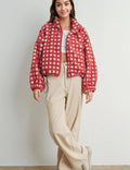 This stand-up collared checked jacket features vibrant colors, is incredibly soft against your skin, and zips shut. Perfect for casual everyday wear, it's the perfect addition to your wardrobe.