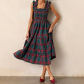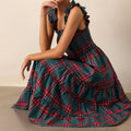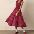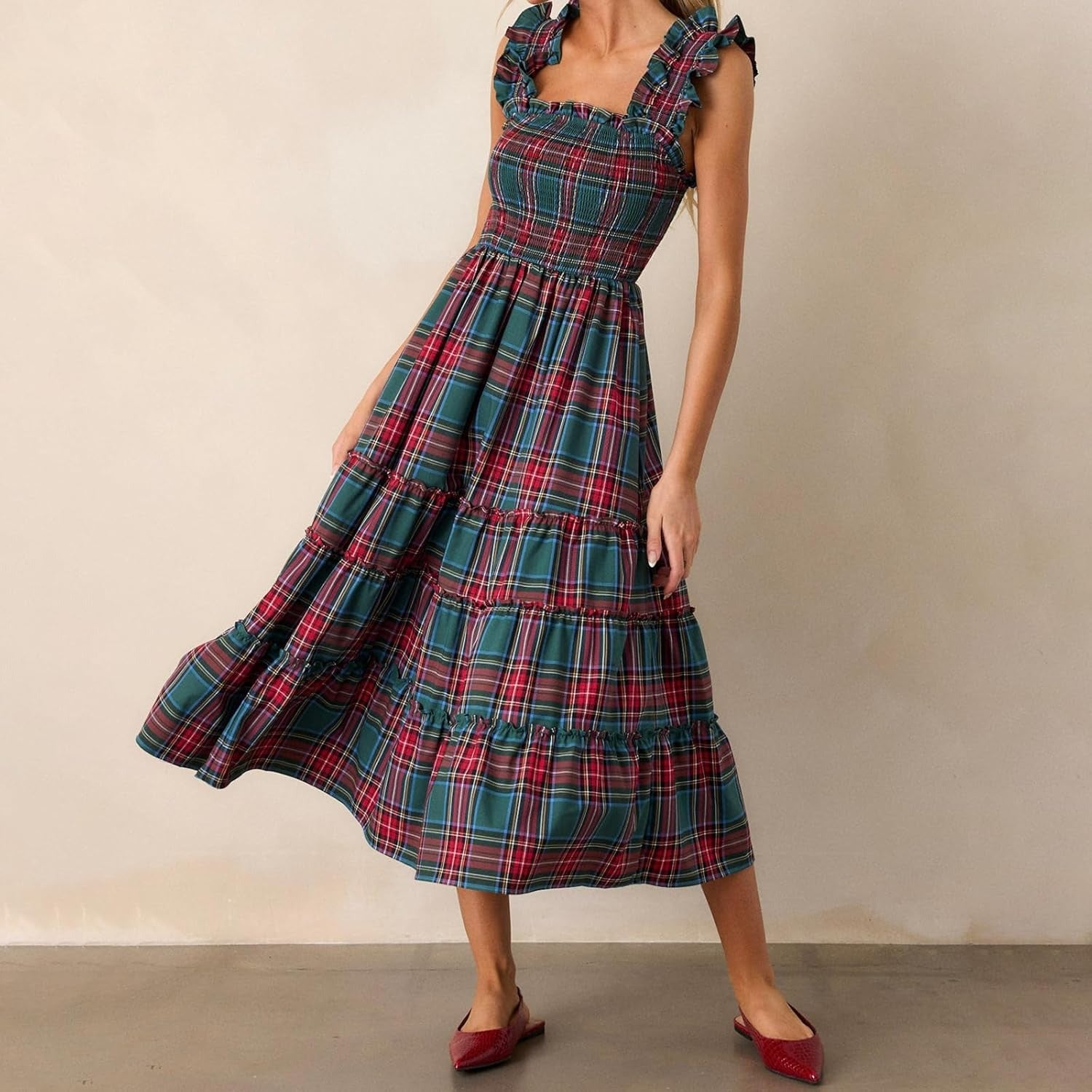 Turn heads wherever you go with this chic and easygoing Women’s Sleeveless Plaid Ruffle A-Line Dress. Designed for the modern woman who values both comfort and style, this boho-inspired dress brings timeless plaid print to life with flirty ruffles, a smocked chest, and a flattering A-line silhouette.