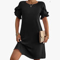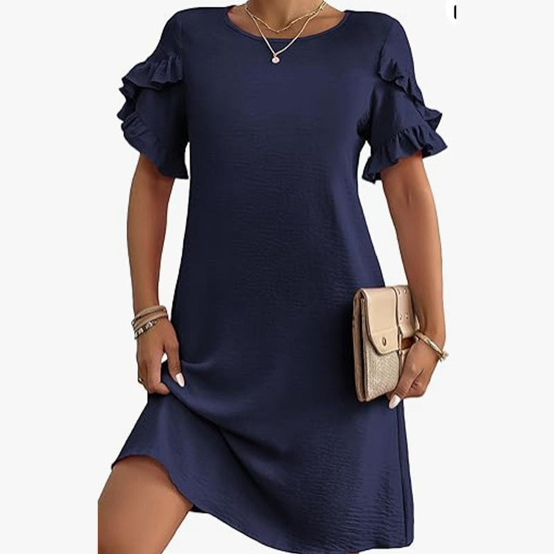 ELEGANT RUFFLED SLEEVES: Short sleeves with soft ruffles add a graceful touch and subtle volume, enhancing the overall charm of the dress.