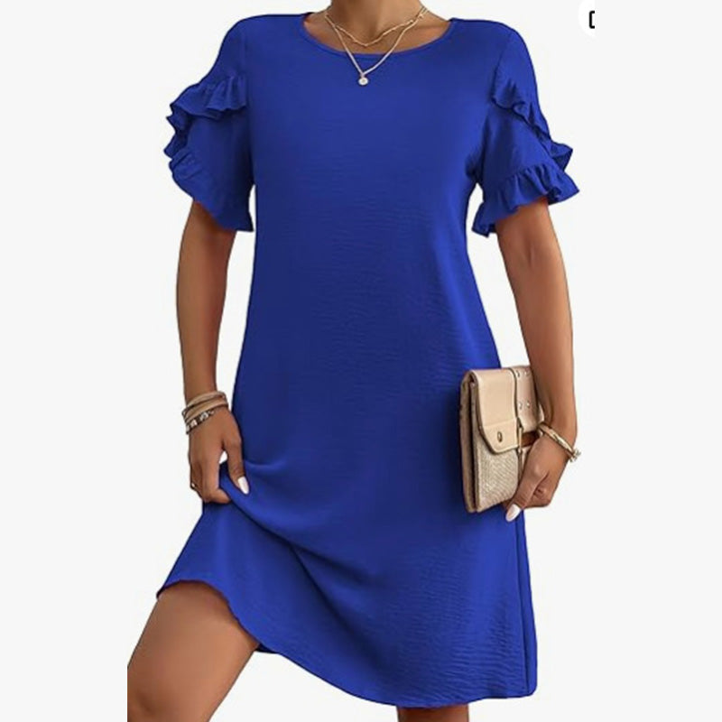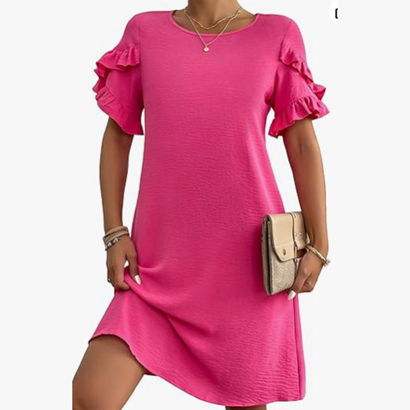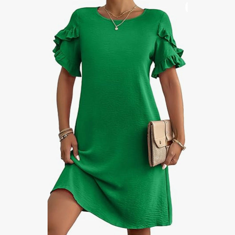 Women’s Solid A-Line Ruffled Short Sleeves Dress