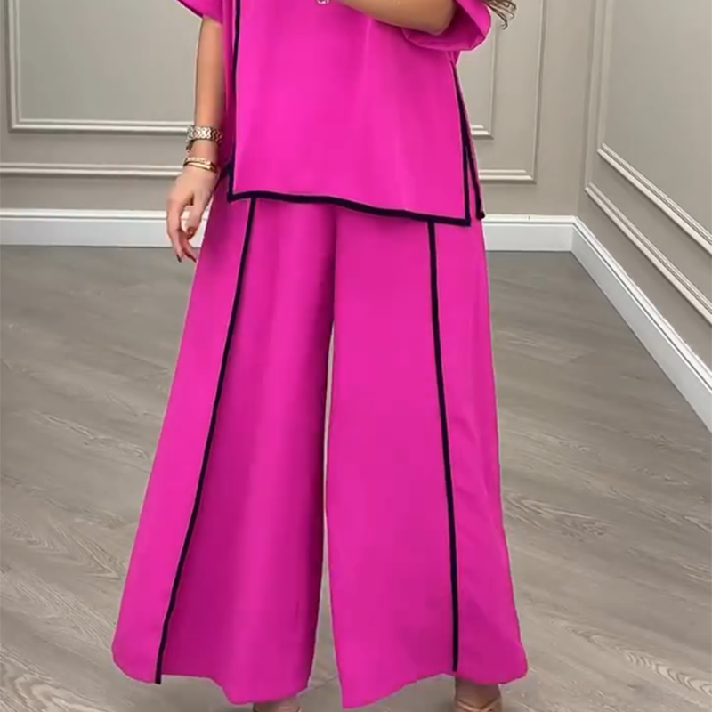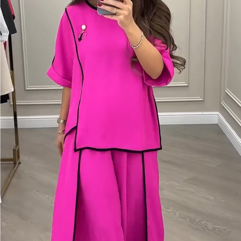 TRENDY TWO-PIECE SET - This chic two-piece set combines a loose-fit top with stylish wide-leg pants, offering a modern, coordinated look that’s perfect for casual outings or weekend relaxation.