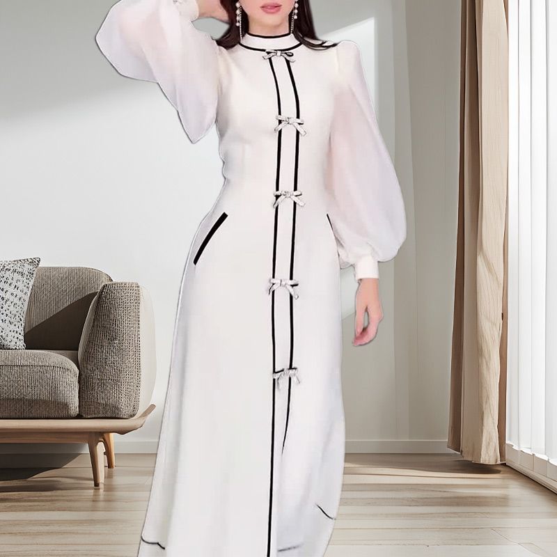 FLATTERING DESIGN: This stunning maxi dress features a half-turtleneck and a chic front bow that accentuates the waist, giving you a slimmer and more defined silhouette. Perfect for casual outings and formal occasions where you want to look your best!