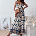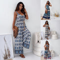 Women’s Trendy Print Backless Jumpsuit with Tassel Belt